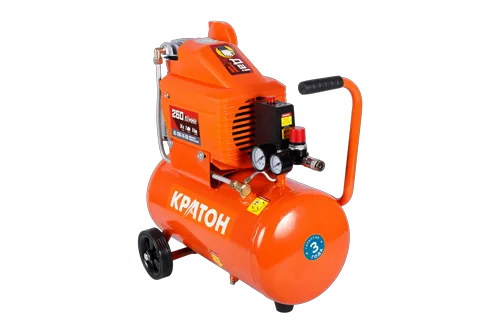Масляный компрессор с прямой передачей бренда Кратон AC-260-24-DD имеет компактные размеры. Для перемещения на небольшие расстояния компрессор комплектуется рукояткой и двумя колесами. Инструмент оснащен предохранительным клапаном для ограничения максимального давления сжатого воздуха в ресивере и защиты его от разрушений и перегрузок.