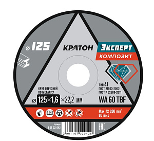 Круг отрезной по металлу Кратон "Эксперт" SG46TBF 125х1,6х22,2 мм
