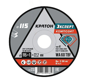 Круг отрезной по металлу Кратон "Эксперт" SG54TBF 115х1,0х22,2мм
