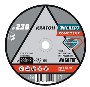 Круг отрезной по металлу Кратон "Эксперт" SG36TBF 230х2,0х22,2 мм