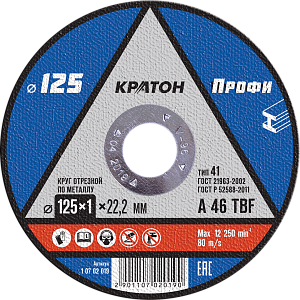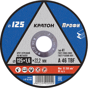 Прямо сейчас купить Круг отрезной прямой по металлу Кратон A24TBF Ø125 х 22,2 х 2,5 мм, Вы можете в интернет-магазине «100ДЕЛ».