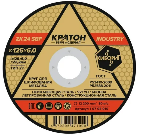 Круг для шлифования Кратон "INDUSTRY" ZK24SBF 125х6,0х22,2 мм