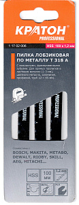 Пилка лобзиковая по металлу Кратон PROFESSIONAL T 318 A набор 3шт