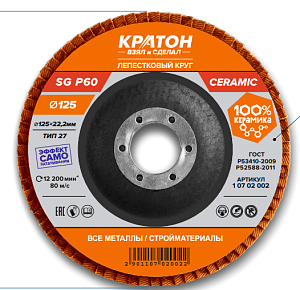 Круг лепестковый шлифовальный Кратон Ø125 мм SG Р60 T27