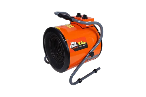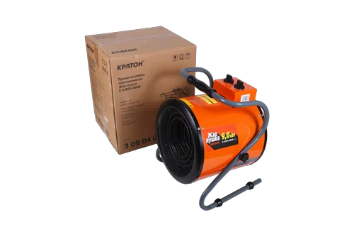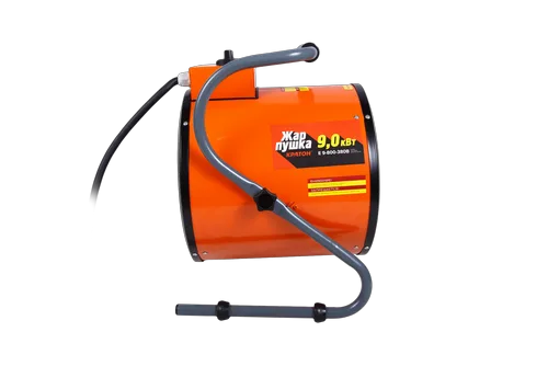 Электрическая тепловая пушка бренда Кратон Жар-пушка Е 9-800-380В используется для подогрева и осушения помещений. Предельно простая в эксплуатации и управлении. В качестве нагреваетльных элементов в ней задействованы ТЭНы, выполненные из качественного материала. Конструкция предусматривает ручку, при помощи которой пушку можно перемещать, не занимает много места. Работает не очень громко, не доставляя дискомфорта. Пушка для трехфазной сети с защитой от перегрева, благодаря чему она является полностью безопасной.